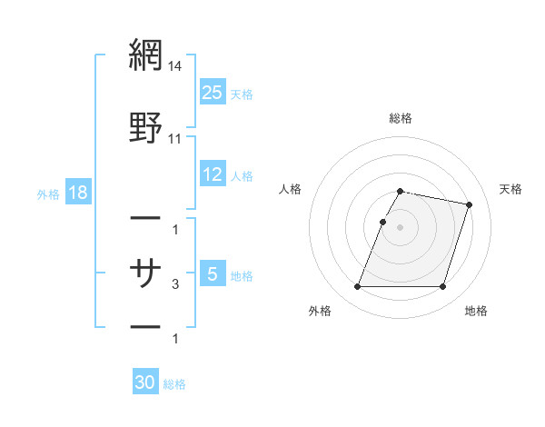 網野 ーサーさんを姓名の画数から五運を鑑定