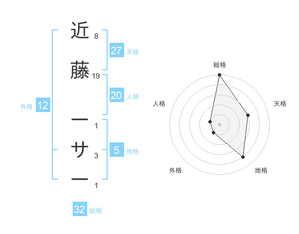 近藤 ーサーさんを姓名の画数から五運を鑑定