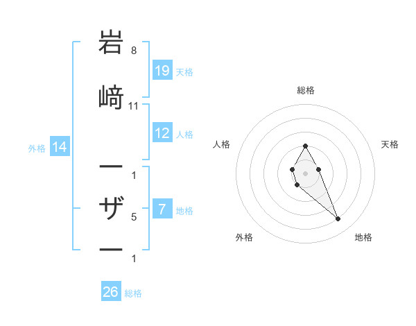 岩﨑 ーザーさんを姓名の画数から五運を鑑定