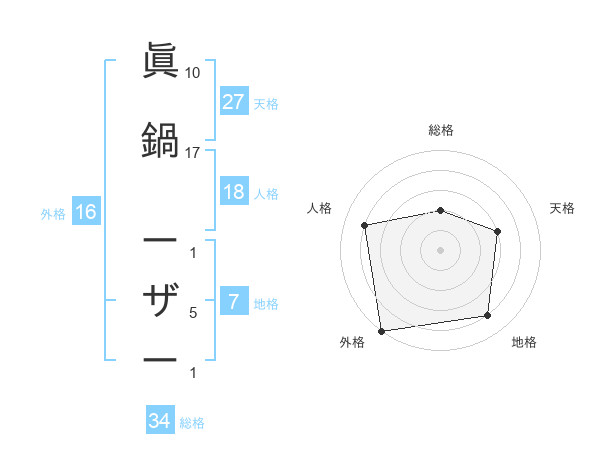 眞鍋 ーザーさんの総格は34画の2点!