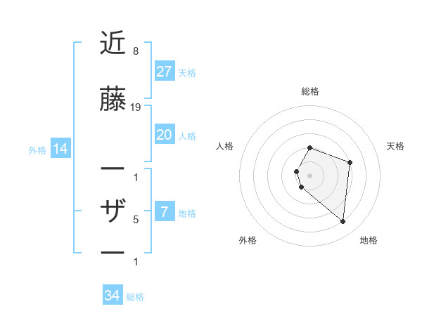 近藤 ーザーさんの総格は34画の2点!