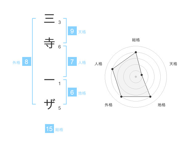 三寺 ーザさんを姓名の画数から五運を鑑定