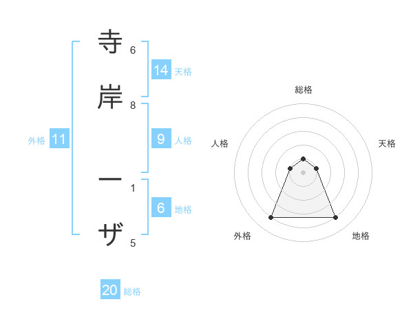 寺岸 ーザさんの総格は20画の1点!