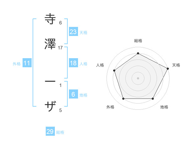 寺澤 ーザさんを姓名の画数から五運を鑑定