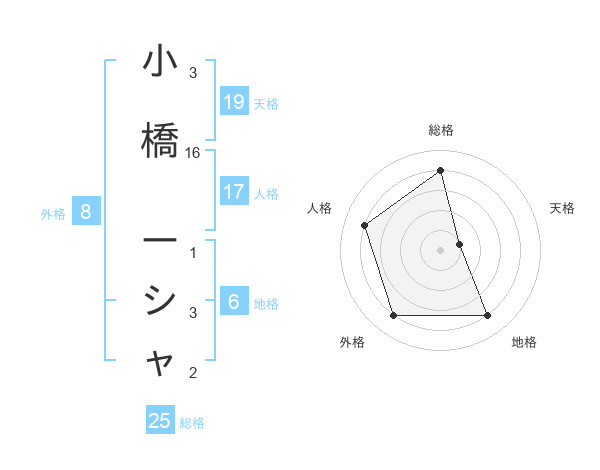 小橋 ーシャさんを姓名の画数から五運を鑑定