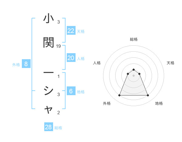 小関 ーシャさんを姓名の画数から五運を鑑定