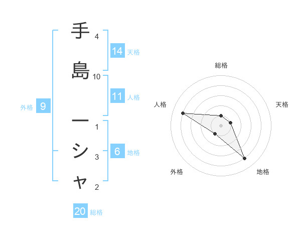 手島 ーシャさんを姓名の画数から五運を鑑定