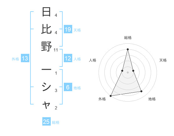 日比野 ーシャさんを姓名の画数から五運を鑑定