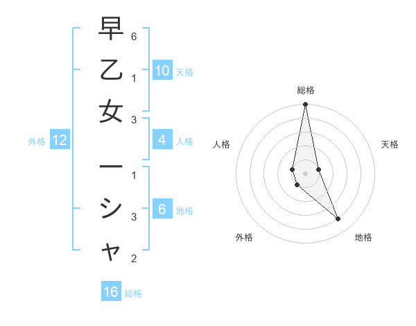 早乙女 ーシャさんを姓名の画数から五運を鑑定
