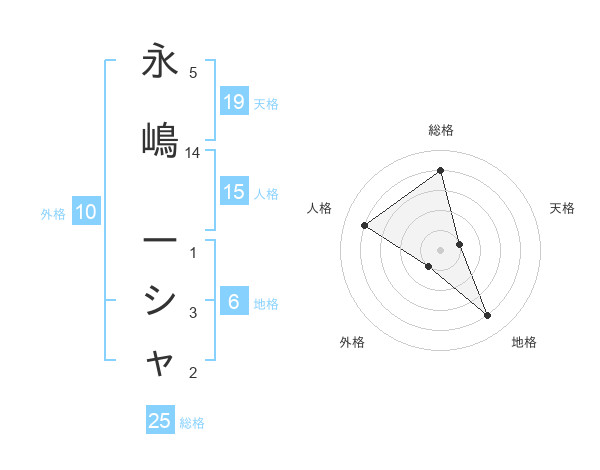 永嶋 ーシャさんを姓名の画数から五運を鑑定