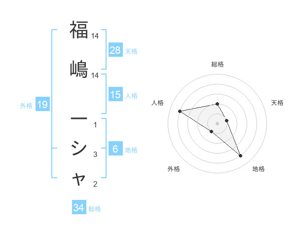 福嶋 ーシャさんを姓名の画数から五運を鑑定