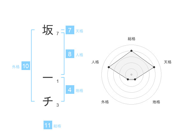 坂 ーチさんの総格は11画の4点!