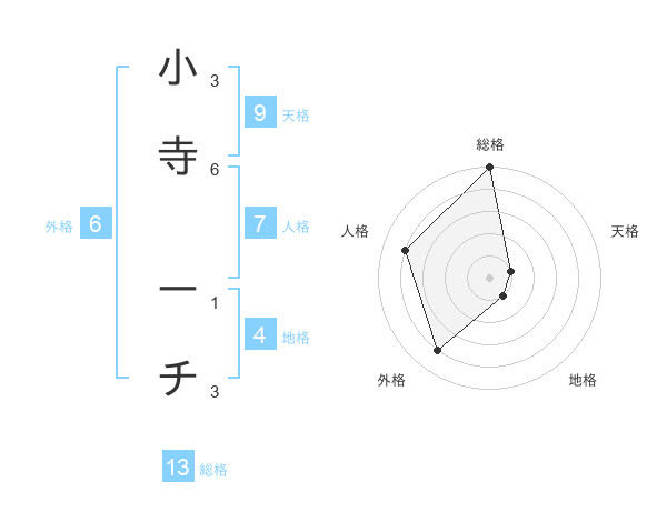 小寺 ーチさんの総格は13画の5点!