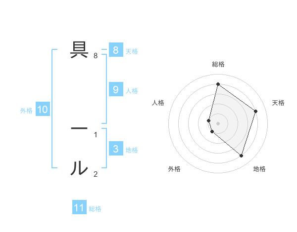 具 ールさんの総格は11画の4点!