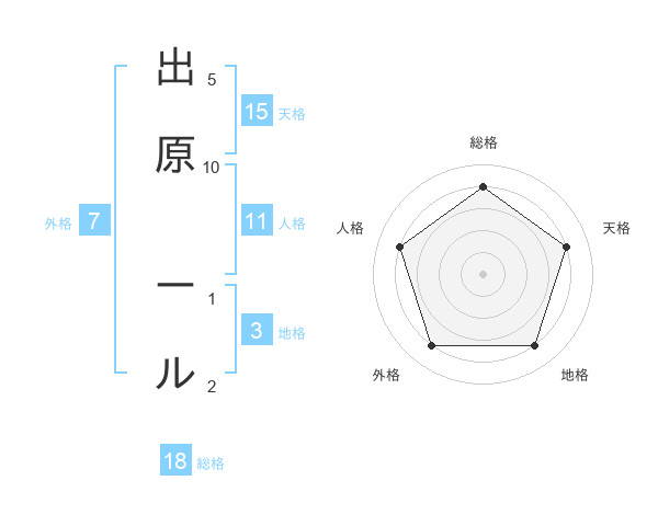 出原 ールさんの天格は15画の4点!