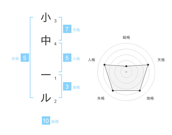 小中 ールさんの総格は10画の1点!