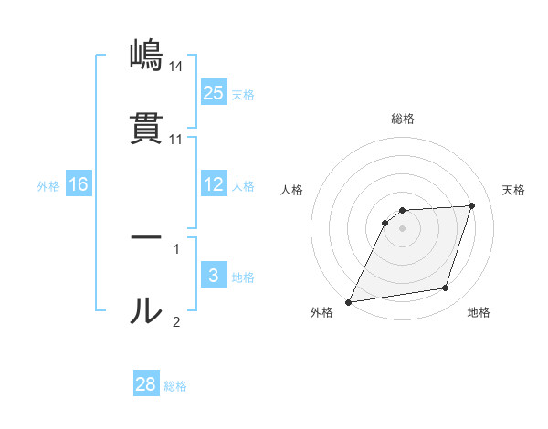 嶋貫 ールさんを姓名の画数から五運を鑑定