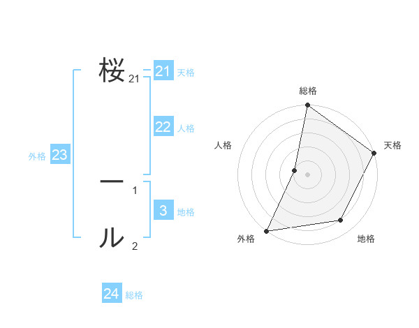 桜 ールさんの天格は21画の5点!