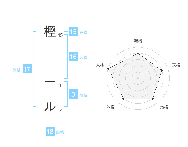 樫 ールさんの外格は17画の4点!
