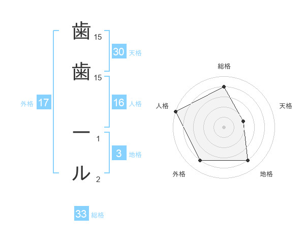 歯歯 ールさんの外格は17画の4点!
