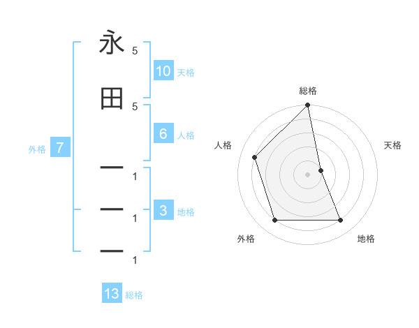 永田 ーーーさんを姓名の画数から五運を鑑定
