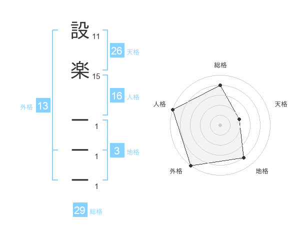 設楽 ーーーさんを姓名の画数から五運を鑑定