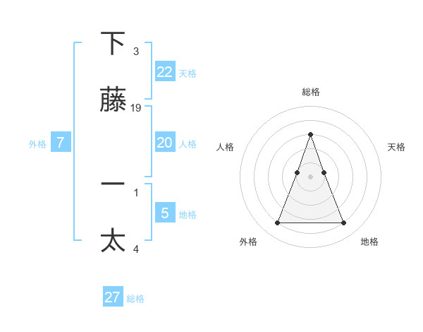 下藤 ー太さんの総格は27画の3点!
