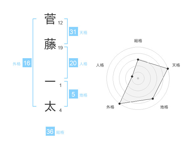 菅藤 ー太さんを姓名の画数から五運を鑑定