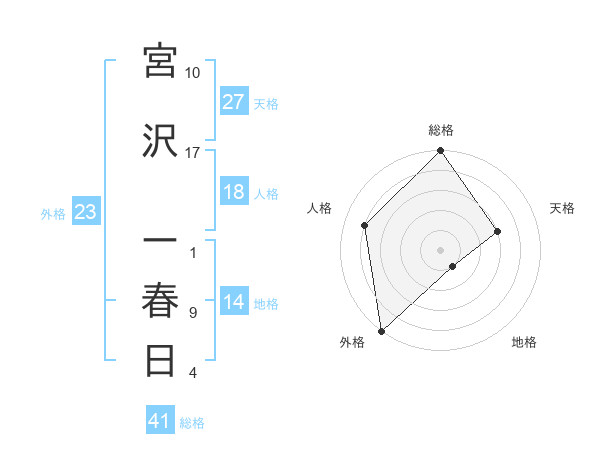 宮沢 ー春日さんの外格は23画の5点!