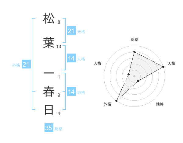 松葉 ー春日さんの天格は21画の5点!