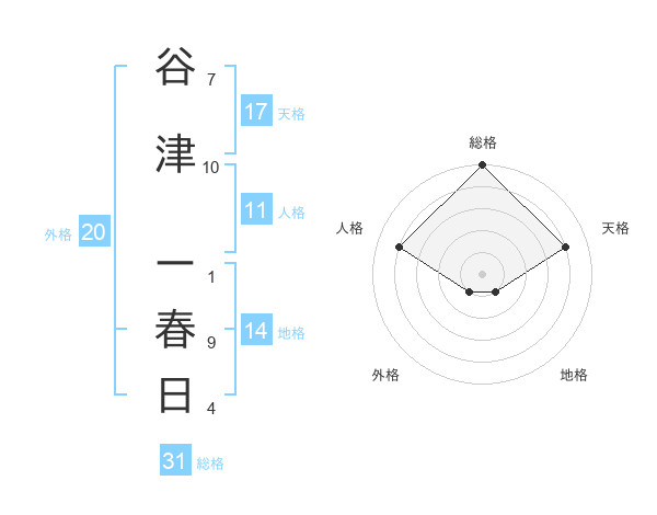 谷津 ー春日さんを姓名の画数から五運を鑑定