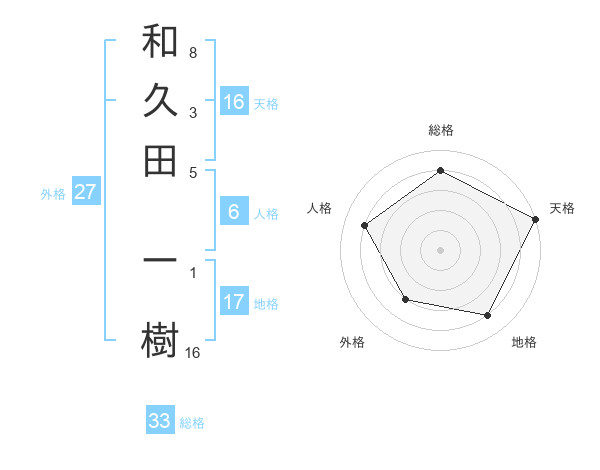 和久田 ー樹さんを姓名の画数から五運を鑑定