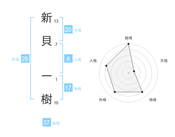 新貝 ー樹さんを姓名の画数から五運を鑑定