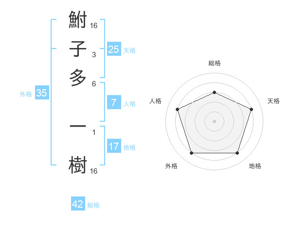 鮒子多 ー樹さんを姓名の画数から五運を鑑定