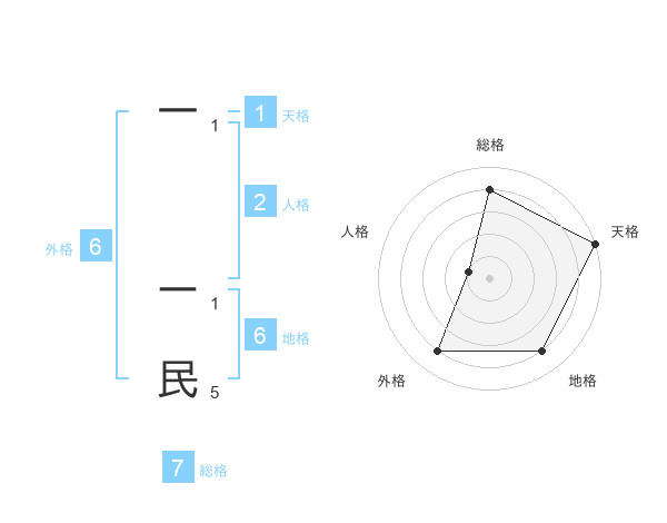 一 ー民さんの総格は7画の4点!