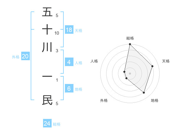 五十川 ー民さんの総格は24画の5点!