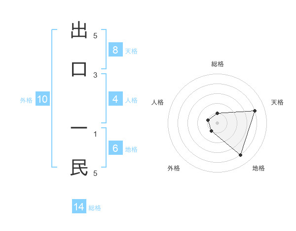 出口 ー民さんの総格は14画の1点!