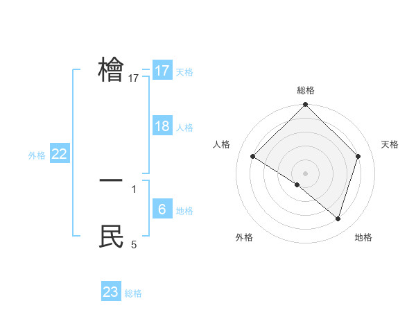 檜 ー民さんの総格は23画の5点!
