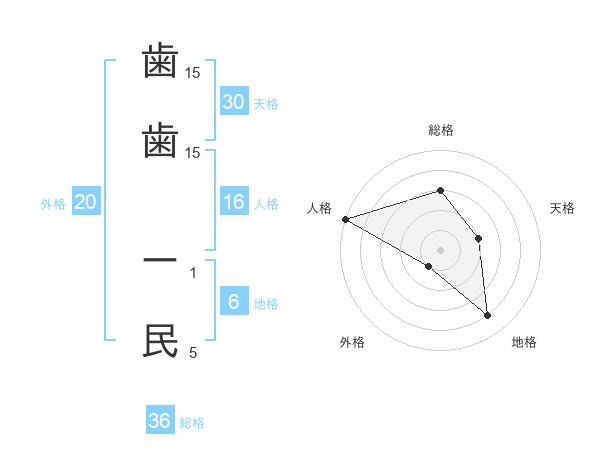 歯歯 ー民さんの人格は16画の5点!