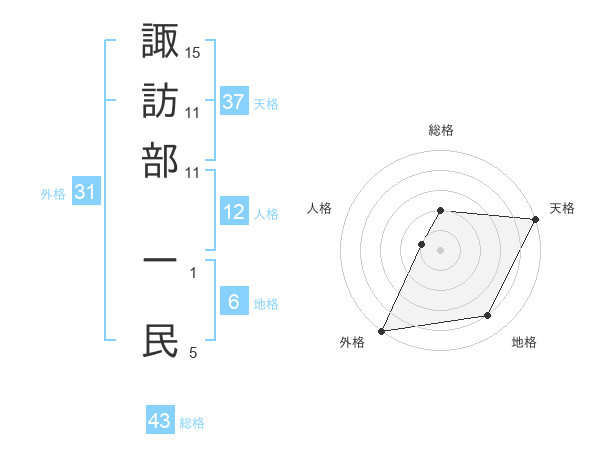諏訪部 ー民さんを姓名の画数から五運を鑑定