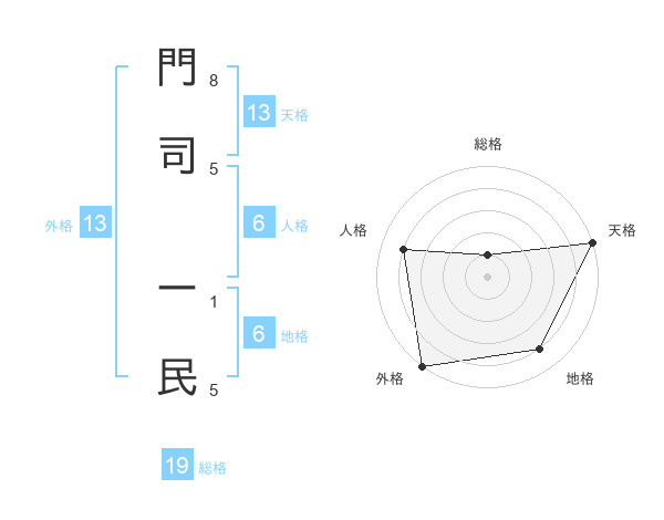 門司 ー民さんの外格は13画の5点!