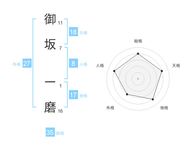 御坂 ー磨さんを姓名の画数から五運を鑑定