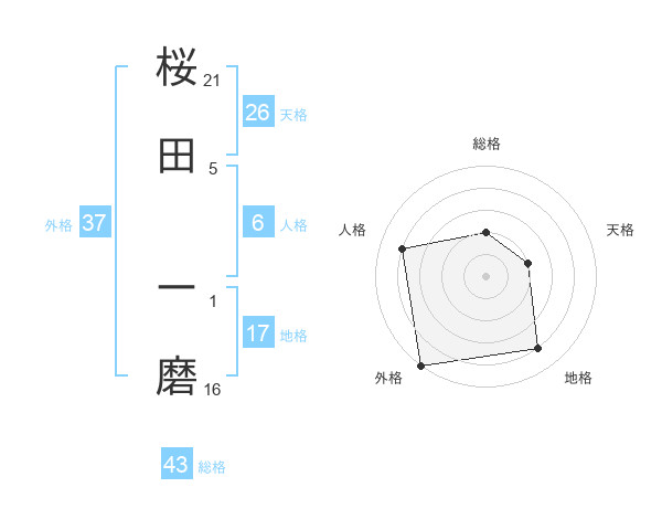 桜田 ー磨さんを姓名の画数から五運を鑑定