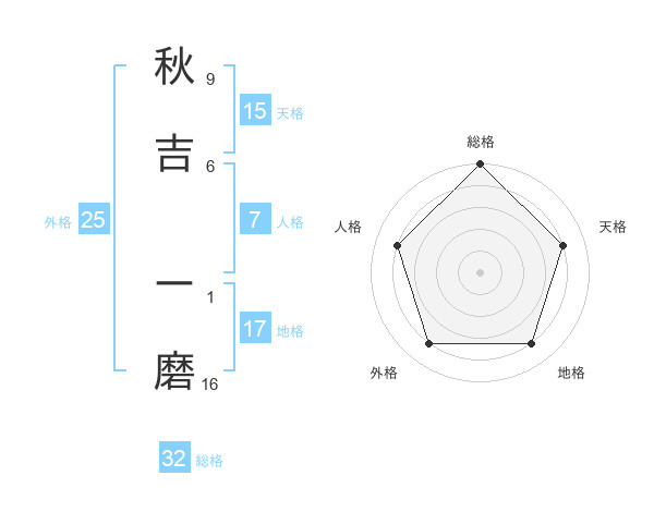 秋吉 ー磨さんを姓名の画数から五運を鑑定