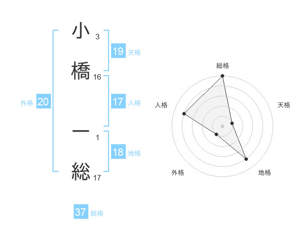 小橋 ー総さんを姓名の画数から五運を鑑定