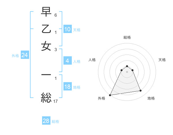 早乙女 ー総さんの外格は24画の5点!