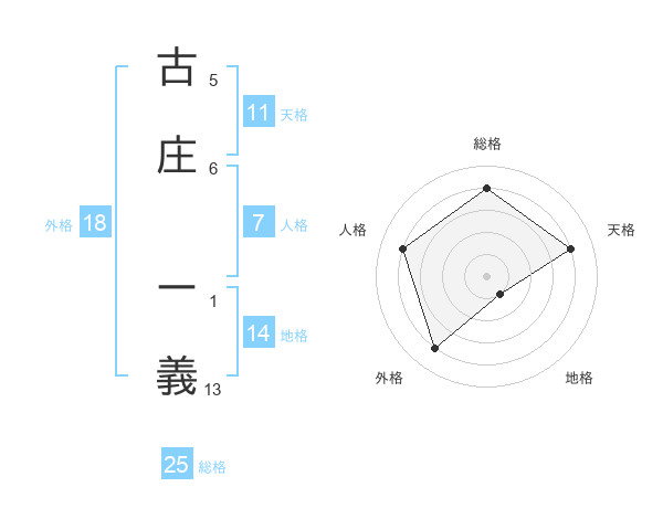 古庄 ー義さんの天格は11画の4点!