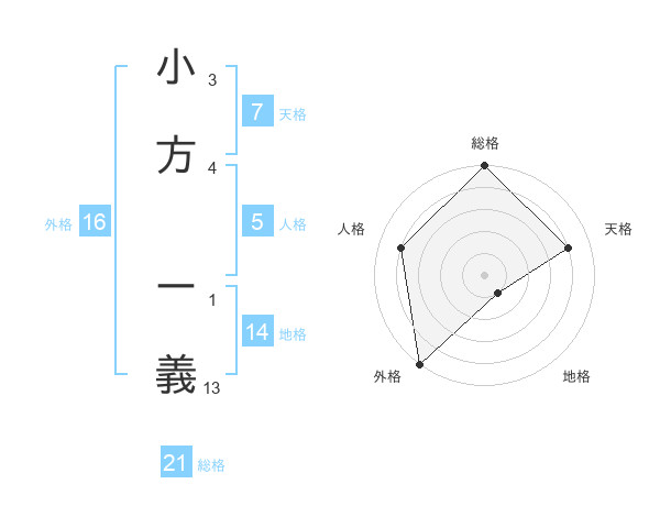 小方 ー義さんの総格は21画の5点!