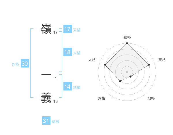 嶺 ー義さんを姓名の画数から五運を鑑定