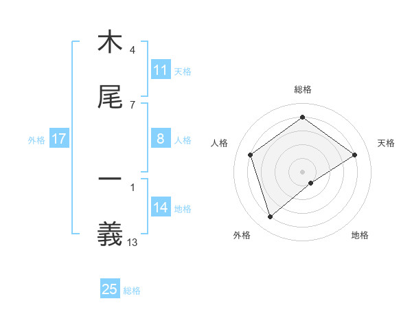 木尾 ー義さんの外格は17画の4点!